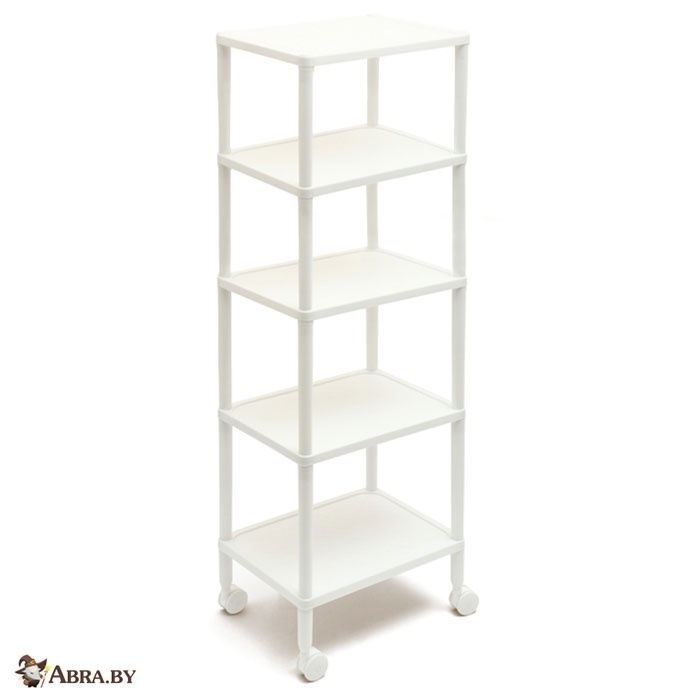 Пластиковая этажерка - практичное решение для организации порядка в доме. Прочные прямоугольные полочки не деформируются и не прогибаются. Этажерка имеет 4 колесика, которые облегчают перемещение этажерки, в том числе и заполненной.