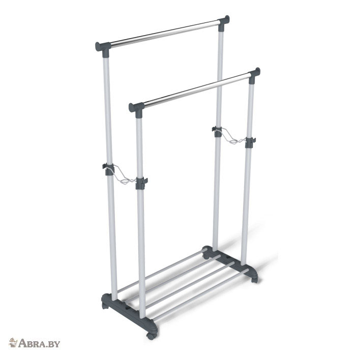 Стойка для одежды – универсальное современное решение для организованного хранения вещей. Компактные размеры и наличие колесной опоры поможет Вам рационально выбрать место для размещения вешалки, будь то гостиная, гардероб или фойе. Телескопическая система позволит выбрать подходящую высоту для хранения вещей, а конструкция-трансформер – собрать или разобрать в любой момент. Напольная вешалка имеет дополнительную полочку для обуви, а соединительные планки между стойками, благодаря наличию отверстий, можно использовать для хранения аксессуаров.
