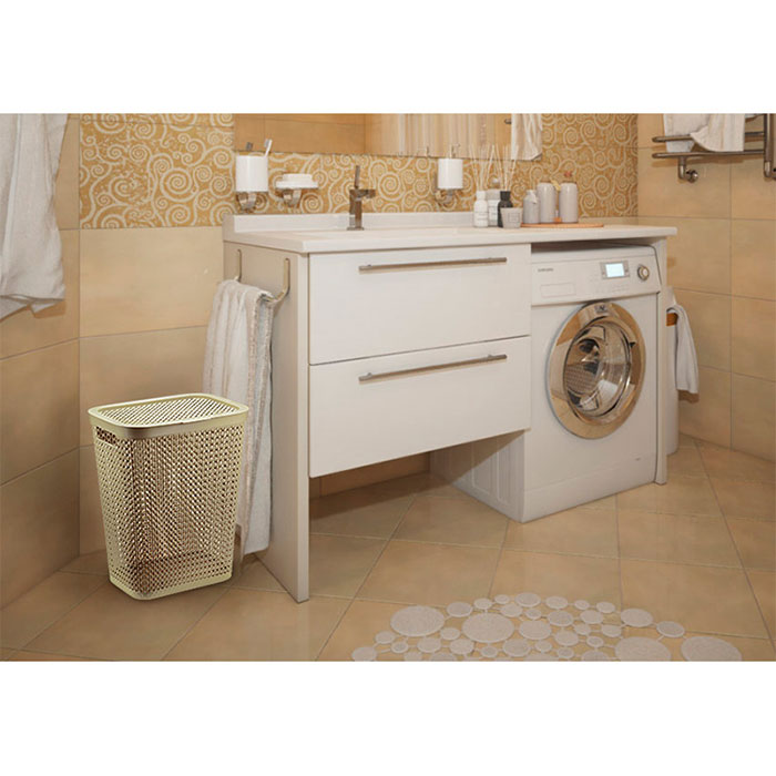 Корзина выполнена из прочного пластика, отвечающего требованиям влажного помещения.