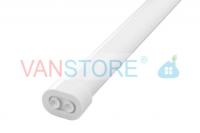Белый карниз с регулировкой длины и пружинной системой фиксации. Дополнительно крепится к стенам при помощи двух двойных присосок. Длина изменяется от 70 до 120 см.