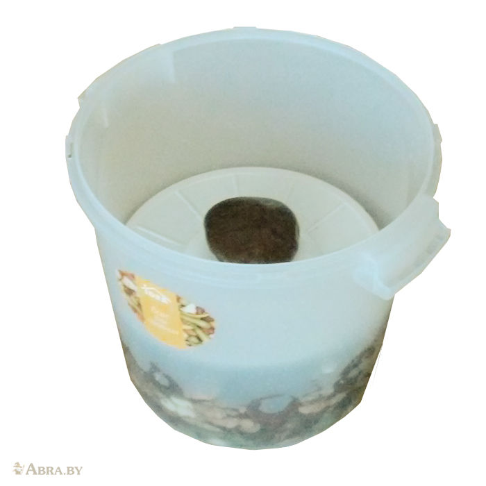 Эта пластиковая "пуговка" идеально входит в бак и имеет небольшие отверстия для того, чтобы рассол легко проходил на поверхность при надавливании. Для гнета в ней тоже предусмотрено специальное углубление в центре.
